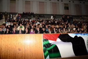 ودعا طلبة معاهد حلب المشاركون في الاحتفالية التي أقامها الاتحاد الوطني لطلبة سورية اليوم في صالة الأسد الرياضية إلى محاربة الإرهاب وطرد التنظيمات الإرهابية التي جلبت القتل والدمار والخراب لسورية الحبيبة مؤكدين أن الشعب السوري موحد أكثر من أي وقت مضى في مواجهة الإرهاب وداعميه وأن جميع مكوناته تحمل الهوية السورية الموحدة.
