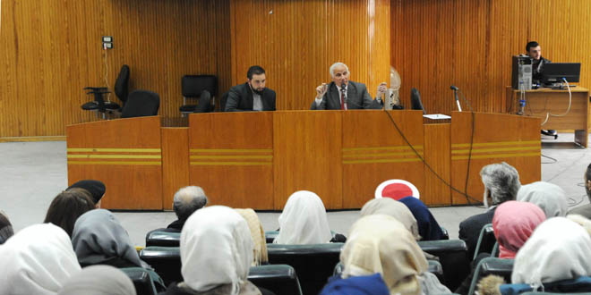 نظمت اللجنة التحضيرية السورية الفلسطينية للحملة العالمية ضد جريمة وعد بلفور المشؤوم بالتعاون مع فرع جامعة دمشق للاتحاد الوطني لطلبة سورية واتحاد الكتاب العرب ندوة سياسية في كلية التربية اليوم بعنوان “جريمة تقسيم فلسطين ما بين الواقع والقانون الدولي”.