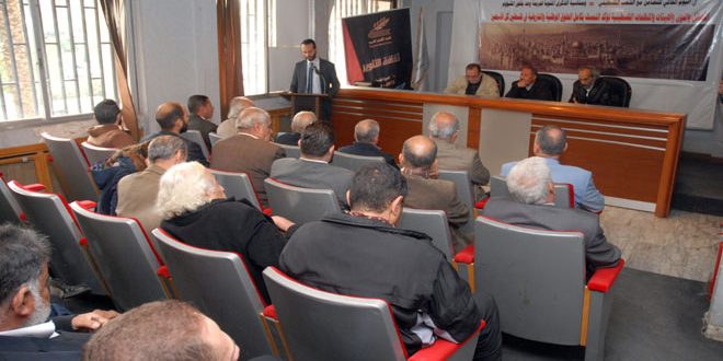 بدوره أشار الدكتور سليم الخراط المنسق العام لائتلاف قوى التكتل الوطني الديمقراطي إلى أن “فلسطين جزء لا يتجزأ من سورية ليس كجغرافيا وتاريخ وإنما وحدة متكاملة على مستوى الديمغرافيا في بلاد الشام” لافتا إلى “أن سورية وهي تواجه الإرهاب ومعها الفصائل الفلسطينية التي تقدم الشهداء إلى جانب الجيش العربي السوري على كل الجبهات تؤكد هذه الوحدة”.