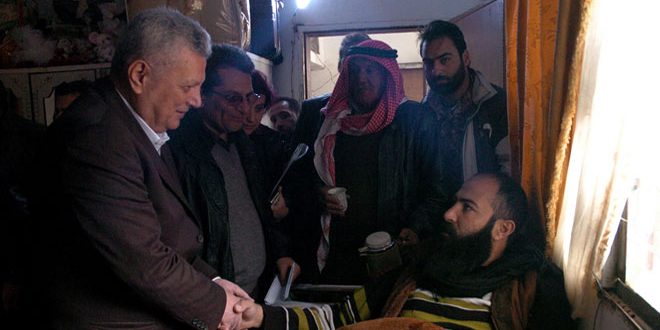 تقديرا لتضحياتهم في سبيل الوطن زار محافظ السويداء عامر العشي اليوم عددا من جرحى الجيش العربي السوري في منازلهم بمدينة صلخد وبلدة عرمان وقرى المنيذرة والكارس وصما البردان للاطمئنان عليهم ومتابعة أوضاعهم.