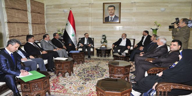 حضر اللقاء رئيس الاتحاد العام لنقابات العمال في سورية جمال القادري والأمين العام لرئاسة مجلس الوزراء الدكتور محمد العموري.