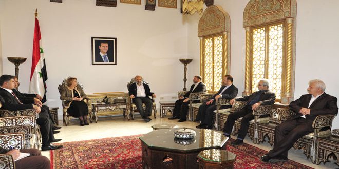 وخلال لقائها اليوم أمين عام منظمة بيت العامل عضو مجلس الشورى الإيراني علي رضا محجوب والوفد المرافق له أعربت عباس عن تقدير الشعب السوري وامتنانه لوقوف إيران إلى جانب سورية في مواجهة الحرب الكونية الظالمة التي تشن ضدها مشيرة إلى ضرورة تطوير عمل لجنة الصداقة السورية الإيرانية المشتركة بما يخدم مصالح الشعبين والبلدين.