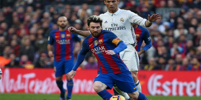 تعادل ريال مدريد بهدف لمثله مع مضيفه وغريمه التقليدي برشلونة حامل لقب دوري الدرجة الاولي الإسباني لكرة القدم في اللقاء الذي جمعهما في ملعب نيوكامب اليوم.