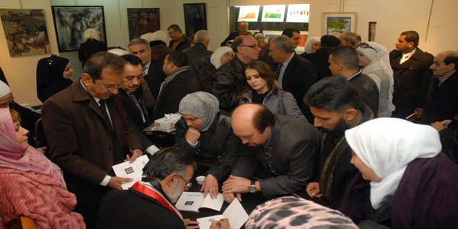 كما ألقى الشاعر الطبيب محمد سعيد العتيق أبياتا محتفيا بديوان “شيبتي من ياسمين” فقال “ناغيت حورا للبيان فأقبلت ..تسقيك من عذب الرضاب وتلهم لكأن عبقر غادرت أشباحها..نفرت اليك إلى حماك تجمم ألقت إليك أعنة ضبحت بها..خيل البلاغة في رباك تحمحم” وقدم رؤى وشهادات كل من الشاعر حسين حموي وهيلانة عطا الله والأديب الشاب عبد الله حلاق في نظرة إيجابية لما احتواه ديوان الشاعر المصري.