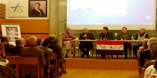 أكد نشطاء سلام سويسريون أن الحرب الإرهابية على سورية هي غزو أمريكي إسرائيلي بدعم من حلف الناتو والدول الخليجية والنظام التركي بهدف ضرب مقدرات الدولة السورية وتدمير مؤسساتها واستقلالية قرارها وسيادتها وتفتيت نسيجها الاجتماعي.