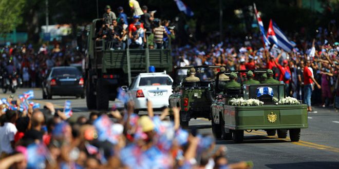 شيعت كوبا اليوم جثمان القائد الراحل فيديل كاسترو في موكب جنائزي يحمل رماده إلى مقبرة سانتا ايفيجينيا في مدينة سانتياغو دي كوبا حيث وري الثرى في ختام تسعة أيام من الحداد.
