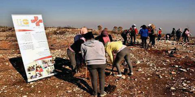 بمشاركة أكثر من 200 طالب وطالبة من الثانوية الزراعية بمدينة مصياف نظم مركز الإغاثة والتنمية بمطرانية السريان الكاثوليك بالتعاون مع صندوق الأمم المتحدة للسكان ومديرية زراعة حماة اليوم حملة تشجير واسعة في محمية الصنوبر بغابة الساجور بمنطقة مصياف.