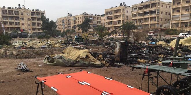 استهدفت التنظيمات الإرهابية ظهر اليوم بقذيفة صاروخية مشفى روسيا متنقلا في حي الفرقان بمدينة حلب ما أدى إلى مقتل طبيبتين روسيتين وإصابة عدد من الاشخاص بجروح.