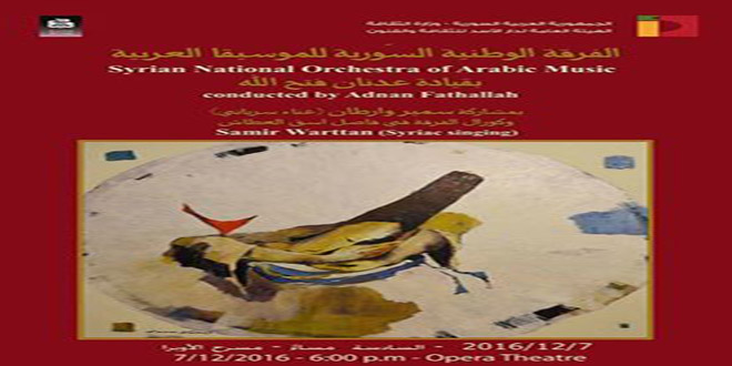 تقدم الفرقة الوطنية السورية للموسيقا العربية حفلها الدوري عند السادسة من مساء الأربعاء القادم على مسرح الأوبرا في دار الأسد للثقافة والفنون بدمشق.