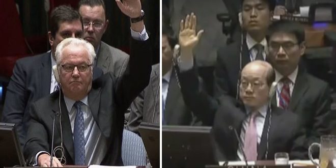 استخدمت روسيا والصين حق النقض “الفيتو” ضد مشروع قرار قدمته اسبانيا ومصر ونيوزيلندا إلى مجلس الأمن الدولي يطالب بهدنة فى مدينة حلب بينما صوتت فنزويلا ضد مشروع القرار وامتنعت أنغولا عن التصويت.