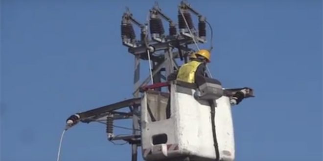 يتابع عمال الكهرباء إعادة تأهيل المنظومة الكهربائية في منطقة تل كردي بريف دمشق لإعادة إقلاع عجلة الإنتاج فيها بعد أن أعاد الجيش العربي السوري الأمن والاستقرار إليها.