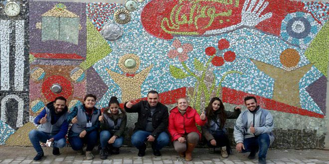 احتفاء باليوم العالمي للتطوع نظم فريق “شموع سورية” التابع لجمعية “كريم” فى حمص فعالية واسعة بعنوان “لمسات تطوعية” تضمنت تنفيذ جدارية فسيفسائية على مدخل حي باب تدمر في المدينة حملت في مضمونها قيم الصمود والمقاومة والتحدي.