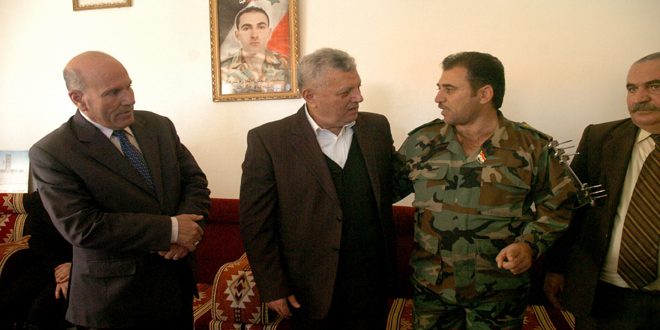 تقديراً لتضحياتهم في سبيل الوطن زار محافظ السويداء عامر إبراهيم العشي اليوم عدداً من جرحى الجيش والقوات المسلحة في منازلهم ببلدة ملح للاطمئنان عن صحتهم ومتابعة أوضاعهم.