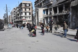 كاميرا سانا رصدت خروج دفعات جديدة من الأهالي وتجولت في عدد من الأحياء الشرقية بعد أن أعاد إليها الجيش بالتعاون مع القوات الرديفة الأمن والاستقرار.