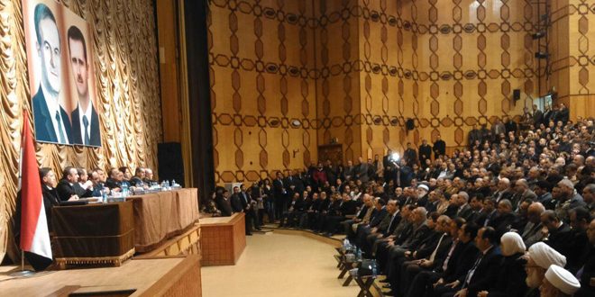 وأوضح المهندس خميس أن ما تواجهه سورية هو معركة بكل المعايير وقال إن “السيد الرئيس بشار الأسد قاد هذه المعركة بشفافية ووضوح ما عمق الانتصار الذي نعيشه في هذه الأيام” مثمنا التضحيات الجسام للجيش العربي السوري في محاربة التنظيمات الإرهابية التي شكلت أدوات للمشاريع التي استهدفت سورية وشعبها.