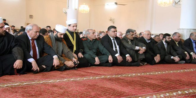 بمناسبة عيد المولد النبوي الشريف أقيم في جامع الحسين بمدينة طرطوس اليوم احتفال ديني بمشاركة عدد من رجال الدين الإسلامي وحشد من الفعاليات الرسمية والشعبية.