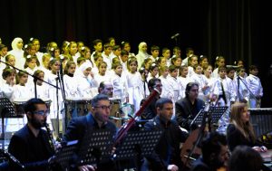 كما أدى نحو 150 طفلا وطفلة من مراكز الإقامة المؤقتة مع فرقة أوتار بقيادة الفنان أمير قره جولي مجموعة من الاغاني منها “نحن جئنا لنراكم وفي الاوتار نلاقيكم” و”حلوة يا بلدي” و”قمرة يا قمرة” و”طلعت يا محلا نورها” معبرين بأصواتهم عن امانيهم البريئة بغد أجمل.