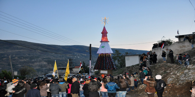 2016-12-12 حتفالا بميلاد السيد المسيح.. إضاءة شجرة الميلاد في بلدة عين حلاقيم بارتقاع 14 مترا 2016-12-12admin