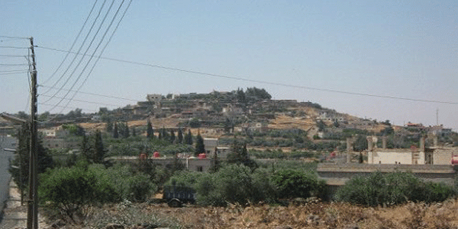 ويشرف على القرية التى ترتفع عن سطح البحر بنحو1127 مترا مجموعة من التلال من جهة الغرب من بينها تل السرحين وتل الحجر وتل الخلات فيما يمر من القرية من الشرق الى الغرب قناة الغسانية.