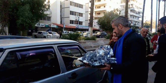مجموعة من متطوعي شباب مؤسسة “درب” احتفلوا على طريقتهم بذكرى المولد النبوي الشريف أمس بأن جابوا شوارع اللاذقية وتفاعلوا مع سكانها بتوزيع الملبس والكعك المحلي على المارة ومعايدتهم وتبادل التهاني معهم في هذا اليوم المبارك وبدورهم بادلهم الأهالي الأمنيات الطيبة.