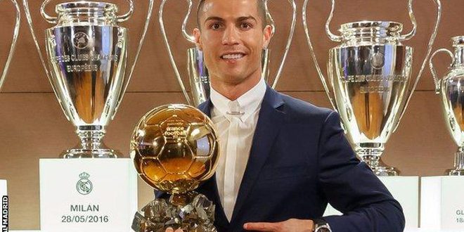 وذكرت صحيفة “أس” الإسبانية أن رونالدو حصل على نسبة تصويت 60 بالمئة من إجمالي عدد الأصوات وهي الأكبر منذ نشأة الجائزة بعدما توج بلقبي دوري أبطال أوروبا مع ناديه ريا ل مدريد وكأس الأمم الأوروبية مع منتخب بلاده البرتغال هذا العام.