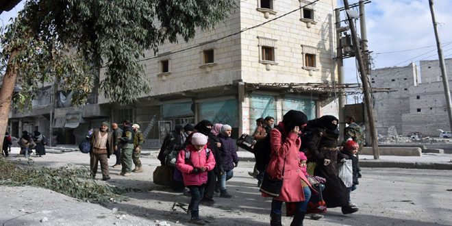 وفي السياق ذاته أشار مركز التنسيق الروسي في حميميم إلى خروج 7796 من أهالي الأحياء الشرقية للمدينة بينهم 3946 طفلا الذين كانت تحاصرهم التنظيمات الارهابية وذلك خلال الساعات الـ24 الماضية.