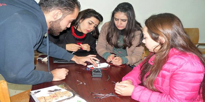 وتابع عبيد.. “على اعتبار أنني طالب جامعي فأنا أعي مشاكل أقراني ولا سيما نقص الخبرة العملية و لذلك كان اختيارنا التوجه لطلاب الهندسة الميكانيكية والكهربائية والميكاترونيك حيث نعمل في المرحلة الأولى التي انطلقت منذ اسبوع تقريبا على تعريف المشاركين بأسس تركيب الدارات البسيطة وتعلم التحكم بها من خلال البرمجة وتوظيفها ضمن مشاريعهم الجامعية القادمة بطرق صحيحة ومفيدة”.
