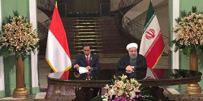 اتفق الرئيس الإيراني حسن روحاني مع نظيره الاندونيسي جوكو ويدودو اليوم على تعزيز التعاون من أجل حل القضايا والمشاكل التي يعاني منها العالم الإسلامي ولا سيما في سورية واليمن وميانمار ودعم الأمن والاستقرار في المنطقة.