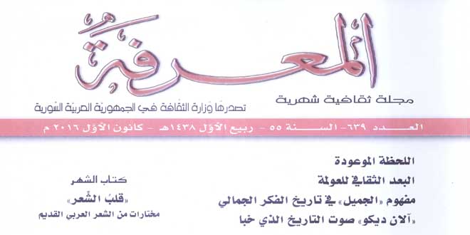تنوعت مواضيع عدد شهر كانون الاول من مجلة المعرفة الشهرية الصادرة عن وزارة الثقافة بين الأدب وعلاقته بالفلسفة ونصوص شعرية وقصصية وقراءات في كتب إضافة إلى كتاب المعرفة الشهري بعنوان قلب الشعر ضم مختارات من الشعر العربي القديم أعدها الشاعر بيان الصفدي.