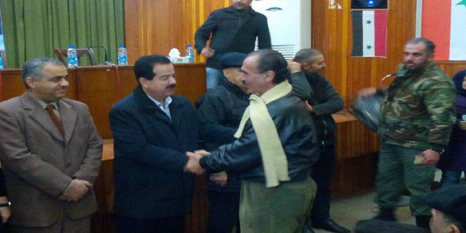 وأعرب المكرمون عن اعتزازهم بتضحيات ابنائهم وبواسل الجيش العربي السوري في سبيل صون وحدة وكرامة الوطن واستمرارهم بالذود عن الوطن حتى تحرير كامل ترابه من رجس الإرهاب.