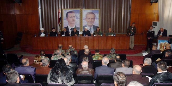 وحضر الاجتماعات التي عقدت في المحافظات مديرو المؤسسات العامة وفعاليات دينية وحزبية وعدد من ضباط مركز التنسيق الروسي في حميميم.