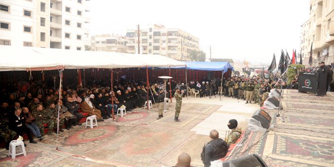 بدوره جدد القائد العام للحرس القومي العربي ذو الفقار العاملي العهد بالمضي على درب الشهداء حتى دحر الإرهاب وتطهير تراب سورية من رجسه جنبا إلى جنب مع الجيش العربي السوري والمقاومة حتى دحر الإرهاب وإعادة الأمن والأمان إلى ربوع سورية.