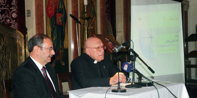 وخلال محاضرة له دعت إليها جمعية المنتدى الوطني السوري مساء اليوم في كنيسة سيدة دمشق استعرض الأب زحلاوي أهم المحطات والأحداث التي مرت خلال المئة عام الماضية في سورية والمنطقة والعالم والتي “كانت نتائجها كارثية” متوقفا عند “الحدث الأبرز” وهو الحرب الإرهابية التي تشن على سورية منذ عام 2011 لافتا إلى أن “مصير العالم يتوقف على نتائج هذه الحرب”.