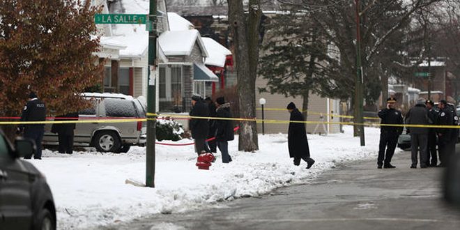 قتل أربعة أشخاص وأصيب اثنان آخران أحدهما طفل في الثانية من العمر في حادث إطلاق نار وقع في مدينة شيكاغو الأمريكية.
