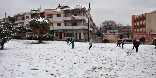 وبينت نشرة مشروع الاستمطار في وزارة الزراعة والاصلاح الزراعى كميات الأمطار الهاطلة خلال الاربع والعشرين ساعة الماضية وحتى السابعة من صباح اليوم حيث سجلت فى ريف دمشق بالحرمون 17مم والتل6مم وسرغايا5ر16 مم منها 9سم ثلج والزبداني 12مم منها 7سم ثلج ومضايا 10مم منها 5 سم ثلج وقطنا ودوما وجديدة الشيباني 10مم وميسلون والنبك 3مم ويبرود 8ر1مم وعسال الورد4 مم وقاسيون وساحة الحجاز8 مم ومساكن برزة 7مم والكسوة 8ر4مم والقطيفة 6مم ودوار المطار 5ر7مم والمشرفة 6ر5 مم وعقربا2مم ومطار دمشق الدولي 5ر4مم والجراجير2ر3مم.