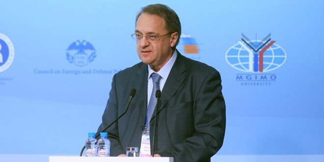 أكد المبعوث الخاص للرئيس الروسي إلى الشرق الأوسط وبلدان إفريقيا نائب وزير الخارجية ميخائيل بوغدانوف عزم بلاده مواصلة دعم سورية في القضاء على الأوكار الإرهابية من تنظيمي جبهة النصرة و”داعش” الإرهابيين بما في ذلك في محيط مدينة تدمر.