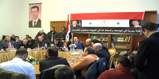 عقد فرع الاتحاد الوطني لطلبة سورية في روسيا الاتحادية ورابطة الدول المستقلة مؤتمره الدوري اليوم في موسكو بحضور سفير سورية في روسيا الدكتور رياض حداد وباسم سودان رئيس مكتب الفروع الخارجية في الاتحاد وحشد من ممثلي الهيئات الإدارية للاتحاد الوطني في الجامعات والمعاهد الروسية.