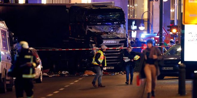 ونقلت قناة (دوتشي فيلي) عن المتحدثة باسم الشرطة الألمانية قولها إن: “شاحنة اقتحمت مساء اليوم سوقا أقيم بمناسبة عيد الميلاد وسط برلين ما أدى إلى مقتل تسعة أشخاص وسقوط ما لا يقل عن خمسين جريحا” مشيرة إلى أن بعض المصابين بحالة الخطر.