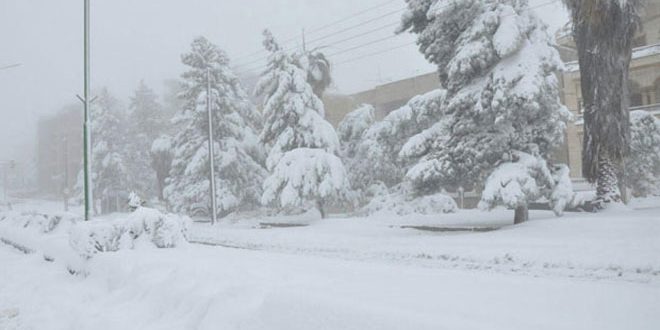 وأوضحت الإدارة فى نشرتها الصباحية أن جميع الطرق في محافظة حمص سالكة عدا طريق عام اكوم جرماش غير سالك بسبب تراكم الثلوج وطريق المزرعة مقلس ضهر القصير غير سالك بسبب تشكل الجليد.