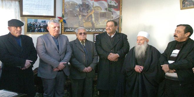 وأكد المحافظ الذي قدم لأسر الشهداء هدايا رمزية ومساعدات عينية أن سورية ستنتصر على أعدائها بفضل تضحيات شهدائها وصمود شعبها وبطولات الجيش العربي السوري الذي يخوض معارك الشرف والعزة في مواجهة التنظيمات الإرهابية المسلحة وداعميها ويحقق الانتصارات المتتالية عليهم.