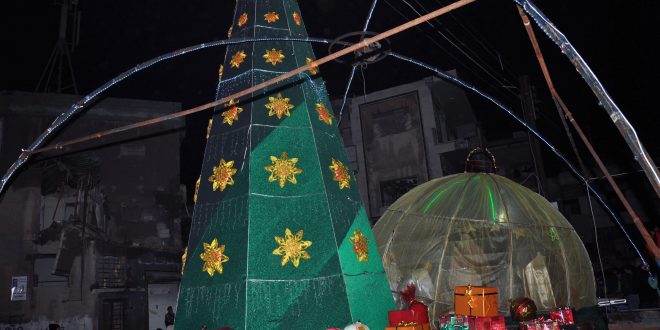 بمبادرة من بصمات ملونة وحمص بيتي ووسط حضور اهلي وشعبي واسع تمت اليوم اضاءة شجرة الميلاد في ساحة الملجا في حي بستان الديوان وسط حمص القديمة.