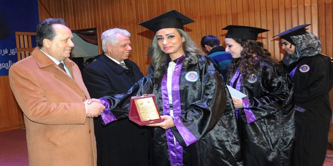 من جهته أكد الخريج الأول محمد إياد الزرعي بعد شكره للأساتذة والجامعة أن التخرج هو ثمرة مسيرة عناء وتعب بذلها الطلاب على مقاعد الدراسة متحدين كل الظروف الصعبة التي أفرزتها الحرب الإرهابية على سورية داعيا زملاءه إلى العمل في مسيرتهم العملية لنشر العدل بين الناس كقضاة ومحامين يدافعون عن الحق وعلى مستوى عال من الرقي الفكري والأخلاقي.