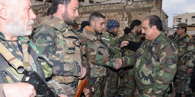 وأوضح عضو القيادة القطرية لحزب البعث العربي الاشتراكي رئيس مكتب العمال محمد شعبان عزوز أن هدف الزيارة “تأدية التحية للشهداء الأبطال الذين رووا بدمائهم الطاهرة الحي وكل تراب سورية” لافتا إلى أن الإرهابيين “استماتوا على هذا الحي كونه يشرف على العديد من الأحياء لكن بواسل القوات المسلحة والشرفاء من أبناء الحي لقنوا الإرهابيين درسا لن ينسوه وسيسجل التاريخ بطولات الشيخ سعيد في مقاومة الإرهاب”.