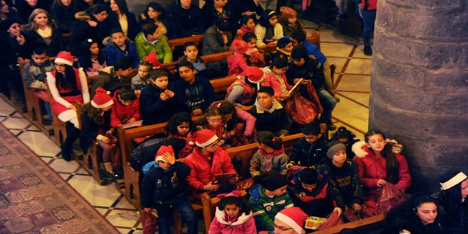 أقامت جمعية رسالة الأولاد التابعة لبطريركية انطاكية وسائر المشرق للروم الملكيين الكاثوليك في كاتدرائية سيدة النياح في باب شرقي بدمشق اليوم احتفالية للأطفال احتفاء بعيد الميلاد المجيد ميلاد السيد المسيح رسول المحبة والسلام.