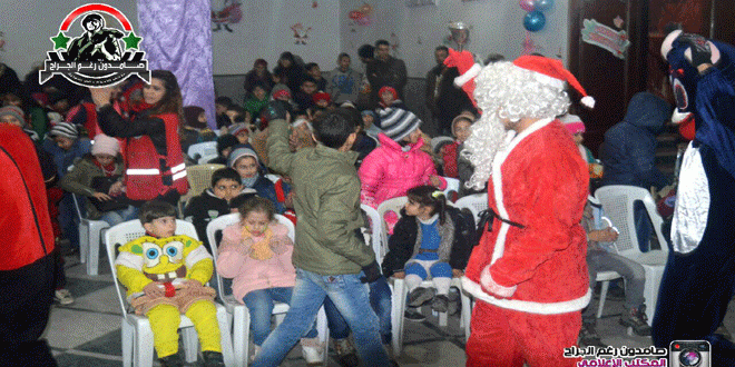 مسابقات وألعاب وغناء وعروض مسرحية وشخصيات كرتونية كانت حاضرة في الحفل الذي أقامه فريق مركز حماية الطفل في نقطة الزهراء في “الهلال الأحمر العربي السوري” بحمص للأطفال بمناسبة اليوم العالمي للطفل وأعياد الميلاد ورأس السنة وذلك في كنيسة أم النور بحي الأرمن.