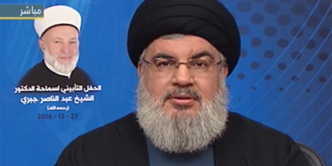 وأشار السيد نصر الله إلى أن هناك محاولات مستمرة لتشويه سمعة حركات المقاومة في لبنان وفلسطين وسمعة المؤيدين والداعمين للشعب الفلسطيني وقضيته موضحا أن الدفاع عن المقاومة هو مسؤولية الجميع ومشددا على أن القضية الفلسطينية ومواجهة المشروع الصهيوني ستبقيان أولوية محور المقاومة.