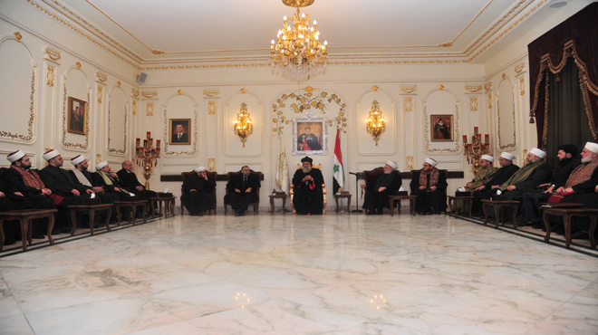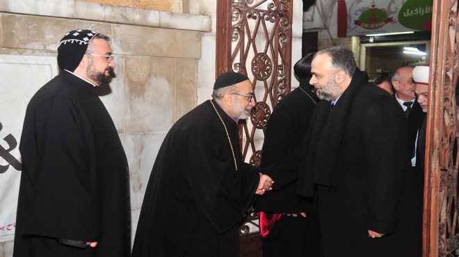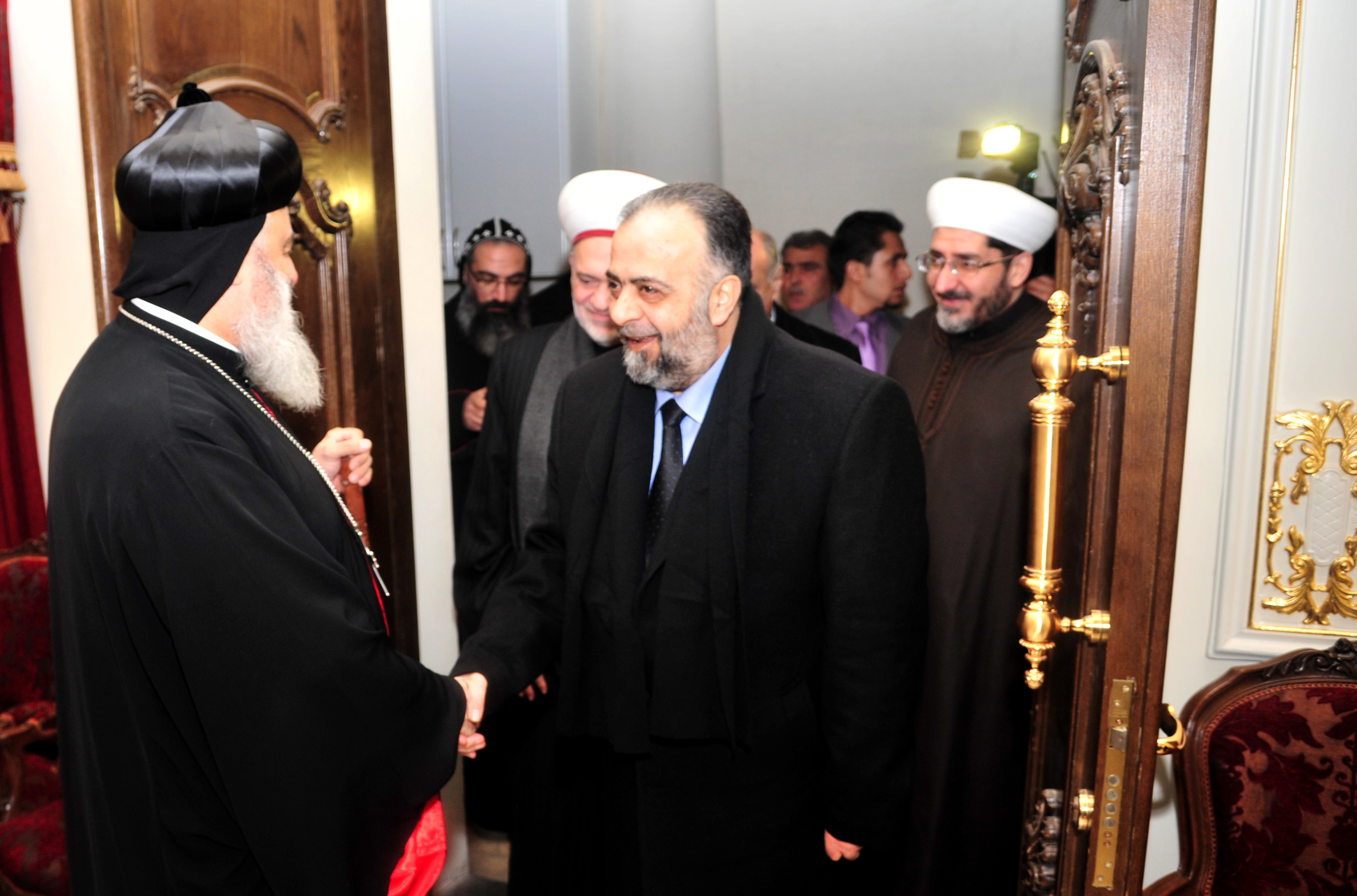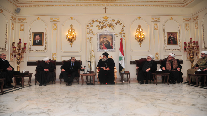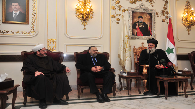 وخلال زيارته مساء اليوم مع وفد كبير من علماء الدين الإسلامي قداسة البطريرك مار اغناطيوس افرام الثاني بطريرك انطاكية وسائر المشرق الرئيس الأعلى للكنيسة السريانية الارثوذكسية في العالم في كاتدرائية مارجرجس البطريركية بدمشق بمناسبة عيد الميلاد المجيد رأى وزير الأوقاف أن أبناء الشعب السوري مسلمين ومسيحيين بنوا الحضارة في سورية يداً بيد ولن تستطيع مؤامرات الوهابيين وحلفائهم وعملائهم أن تنال من صمود هذا الشعب المؤمن بوحدته الوطنية مشيراً إلى أن “انتصارات الجيش السوري الباسل في حلب تتواءم مع نسائم ربيع الأول مولد نبي الرحمة ومع ميلاد السيد المسيح”.