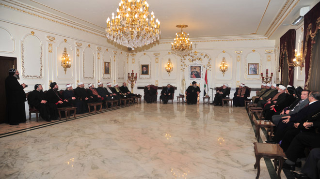 ودعا البطريرك افرام الثاني رجال الدين المسيحي وعلماء الدين الاسلامي إلى لعب دور أكبر في الحوار وتحقيق المصالحات من خلال الإرشاد الديني وتوجيه جيل الشباب وإعادة من غرر بهم إلى حضن الوطن منوها بإنجازات وزارة الأوقاف لجهة فقه الأزمة ومشروع فضيلة وغيرها مؤكداً “أن صمود جيشنا العربي الباسل وحكمة السيد الرئيس بشار الأسد والتفاف الشعب حول قيادته هي التي حققت الانتصار في حلب وستحقق النصر وتطهير كل بقاع الوطن من الإرهاب”.