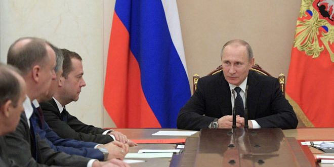 بحث الرئيس الروسي فلاديمير بوتين اليوم مع الأعضاء الدائمين لمجلس الأمن الروسي مختلف جوانب تسوية الأزمة في سورية.