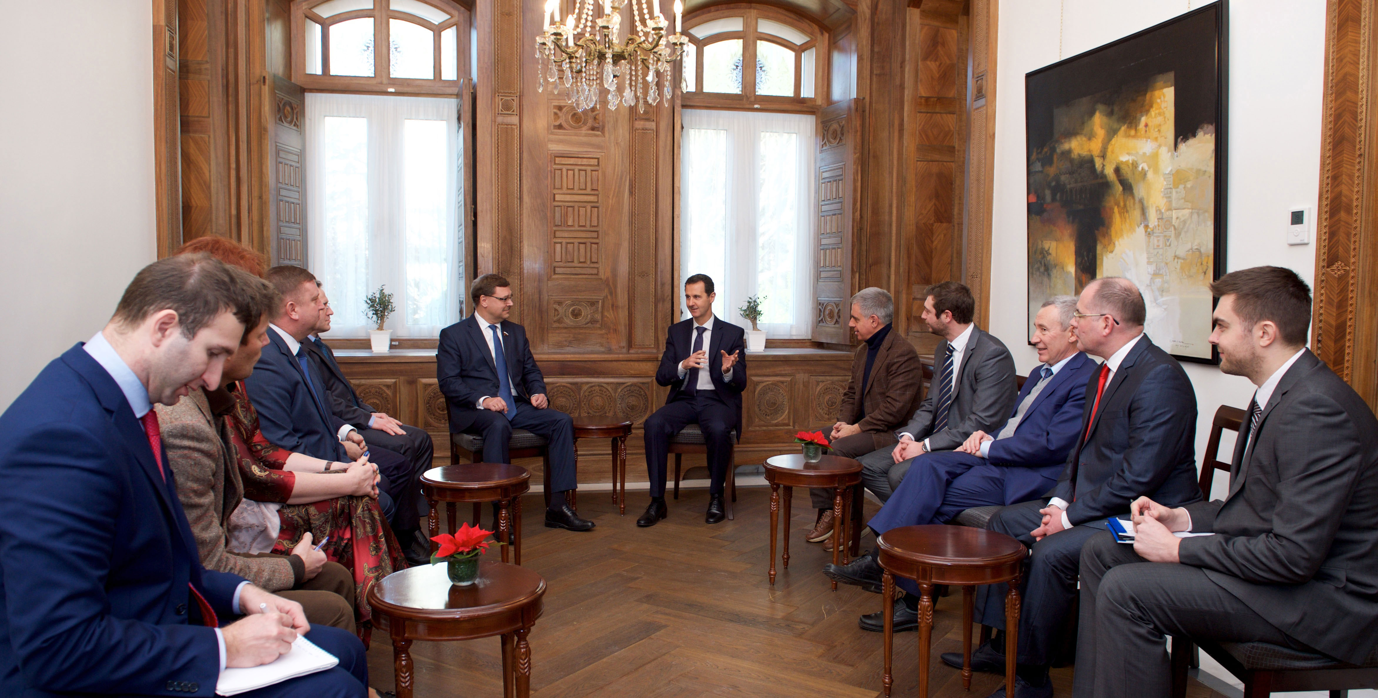 الرئيس الأسد يستقبل وفدا مشتركا يضم نواباً من البرلمان الأوروبي ومجلس الاتحاد للجمعية الفدرالية لروسيا الاتحادية